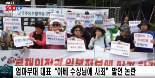 ÁÖ¿Á¼ø ¾ö¸¶ºÎ´ë ´ëÇ¥ µîÀº Áö³­ 1ÀÏ ¼­¿ï Á¾·Î±¸ ¿¾ ÀϺ»´ë»ç°ü ¾Õ¿¡¼­ ¾Æº£ ÃѸ®¸¦ ¡°¾Æº£ ¼ö»ó´Ô¡±À̶ó°í ÁöĪÇÏ¸ç ¡°Çѱ¹ÀÇ ÁöµµÀÚ°¡ ¹«ÁöÇØ ÇÑÀÏ °ü°è¸¦ ÆÄ±«ÇÑ °Í¿¡ ´ëÇØ ±¹¹ÎÀÇ ÇÑ »ç¶÷À¸·Î¼­ Áø½ÉÀ¸·Î »çÁ˵帰´Ù.¡±°í ¸»Çß½À´Ï´Ù.