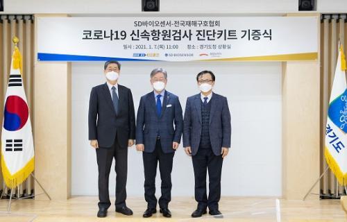 [½Åµ¿¾Æ¹æ¼Û=¹Ú´ë¿µ ±âÀÚ] °æ±âµµ°¡ SD¹ÙÀÌ¿À¼¾¼­·ÎºÎÅÍ Àü±¹ÀçÇØ±¸È£Çùȸ¸¦ ÅëÇØ ½Å¼ÓÇ׿ø°Ë»ç Áø´ÜŰƮ 30¸¸°³¸¦ ±âÁõ¹Þ¾Ò´Ù. µµ´Â ÀÌ Áø´ÜŰƮ¸¦ µµ³» ³ëÀοä¾ç½Ã¼³ 1,239°³¼Ò¿Í ±³Á¤½Ã¼³ 8°³¼Ò µî Áý´Ü°¨¿°¿¡ Ãë¾àÇÑ °íÀ§Çè½Ã¼³¿¡ ´ëÇÑ ¼±Á¦°Ë»ç¿¡ Ȱ¿ëÇÒ ¿¹Á¤ÀÌ´Ù.
