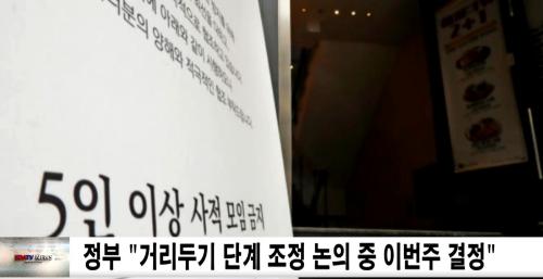Á¤ºÎ´Â ³»´ÞºÎÅÍ ½ÃÀÛµÉ ¼³ Ưº° ¹æ¿ª ´ëÃ¥¿¡ 5ÀÎ ÀÌ»ó »çÀû ¸ðÀÓÀ» ±ÝÁöÇÏ´Â Á¶Ã³°¡ À¯ÁöµÇ´Â °Í ¾Æ´Ï³Ä´Â ÁöÀû¿¡ ¡°ÇöÀç ³íÀÇ ÁßÀÎ »ç¾ÈÀ¸·Î ¾ÆÁ÷ °áÁ¤µÇÁö ¾Ê¾Ò´Ù¡±°í ¸»Çß´Ù.