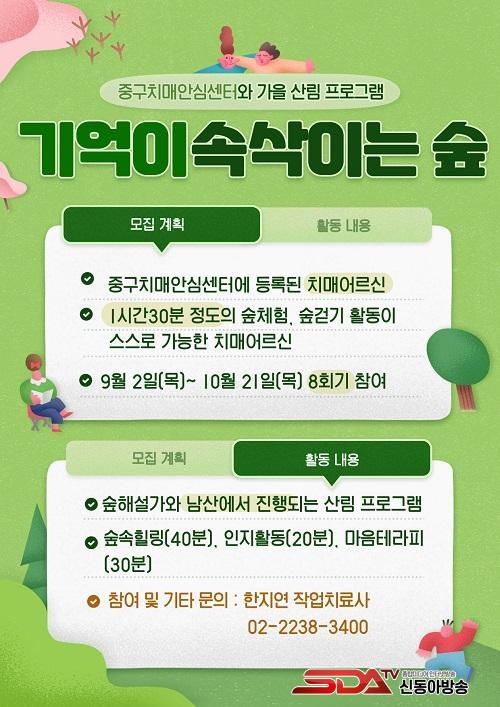 °æµµÀÎÁöÀå¾Ö ³ëÀÎÀ» ´ë»óÀ¸·Î °ø¿ø ³» »êÃ¥°ú ÇÔ²² ÀÚ¿¬¹°À» Ȱ¿ëÇØ ÀÎÁö´É·Â Çâ»óÀ» µ½´Â '±â¾ïÀÌ ¼Ó»èÀÌ´Â ½£', ÀÏ¹Ý ³ëÀÎÀ» ´ë»óÀ¸·Î ½£ ÇØ¼³°ú ½£±æ »êÃ¥À» ÅëÇØ Ä¡¸Å ¿¹¹æ°ú ½ÅüÀû °Ç°ÁõÁøÀ» µ½´Â '±â¾ïÀ» ÁöŰ´Â ½£', Ä¡¸Å³ëÀÎ °¡Á·À» ´ë»óÀ¸·Î ÇÏ´Â 'Èú¸µÀÌ ¼Ó»èÀÌ´Â ½£' µî 3°³ ÇÁ·Î±×·¥À¸·Î ±¸¼ºµË´Ï´Ù.