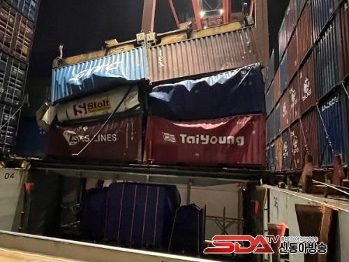 ÇØ°æÀÌ °æºñÇÔÁ¤°ú ¹æÁ¦Á¤À» Ã⵿½ÃÄÑ È®ÀÎÇÑ °á°ú, ÄÁÅ×ÀÌ³Ê À̵¿ÀÛ¾÷ Áß Å©·¹ÀÎ °íÁ¤ÀåÄ¡°¡ ÆÄ¼ÕµÇ¸é¼ ÄÁÅ×À̳ʰ¡ ¼±¹Ú ³»·Î Ãß¶ôÇß°í ÀûÀçµÅÀÖ´ø À¯Çؾ×ü¹°Áú ÄÁÅ×À̳ʸ¦ ÆÄ¼Õ½ÃÄÑ ¿¡Æ¿¸®µ§ ³ëº¸¸£´Ñ ¾à 20ÅæÀÌ ¼±¹Ú ³» ȹ°Ã¢À¸·Î À¯ÃâµÈ °ÍÀ¸·Î ÃßÁ¤Çϰí ÀÖ½À´Ï´Ù.