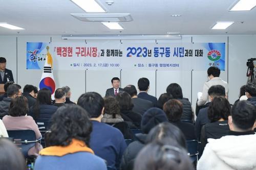 ¹é°æÇö ±¸¸®½ÃÀåÀº 17ÀÏ ¿ÀÀü 10½Ã µ¿±¸µ¿ ÇàÁ¤º¹Áö¼¾ÅÍ¿¡¼ ¿¸° ¡®2023³â ½Ã¹Î°úÀÇ ´ëÈ¡¯¿¡ Âü¼®ÇØ ½Ã¹Î°ú ¼ÒÅëÇÏ´Â µî ÇöÀå Á᫐ ÇàÁ¤À» ÆîÃÆ½À´Ï´Ù.