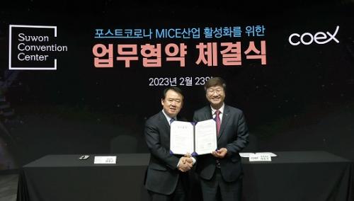 ÀÌÇʱ٠¼ö¿øÄÁº¥¼Ç¼¾ÅÍ ÀÌ»çÀåÀº ¡°À̹ø ¾÷¹«Çù¾àÀÌ ¼ö¿øÄÁº¥¼Ç¼¾ÅÍ¿Í ÄÚ¿¢½ºÀÇ °æÀï·ÂÀ» ³ôÀ̰í, MICE »ê¾÷ÀÇ ¿Ü¿¬À» È®´ëÇÏ´Â °è±â°¡ µÉ °ÍÀ̶ó¸ç ¡°´Ù°¢ÀûÀ¸·Î Çù·ÂÇÒ ¼ö ÀÖ´Â »ç¾÷À» ¹ß±¼ÇØ ¼º°ú¸¦ °ÅµÎ±æ ±â´ëÇß½À´Ï´Ù.