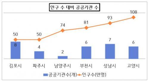 ÀÌ´Â 100¸¸ Àα¸¸¦ °¡Áø Ư·Ê½Ã °í¾ç½Ã(6°³ ±â°ü), 90¸¸ ´ëµµ½Ã ¼º³²½Ã(7°³ ±â°ü), 80¸¸ ´ëµµ½Ã ºÎõ½Ã(6°³ ±â°ü), 70¸¸ ´ëµµ½Ã ³²¾çÁÖ½Ã(2°³ ±â°ü)ÀÇ °ø°ø±â°üº¸´Ù ¸¹Àº ¼öÄ¡´Ù. ±èÆ÷¿Í ºñ½ÁÇÑ Àα¸ ±Ô¸ðÀÇ ÆÄÁֽÿ¡´Â ´Ü 4°³ °ø°ø±â°ü¸¸ÀÌ Á¸ÀçÇÑ´Ù.