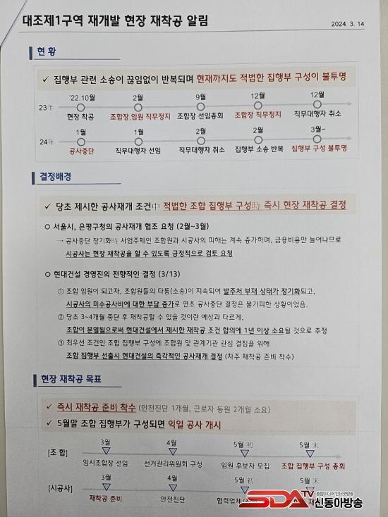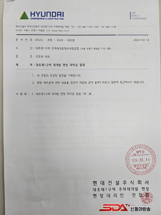 [½Åµ¿¾Æ¹æ¼Û=±èÀǰï±âÀÚ]Çö´ë°Ç¼³ ÃøÀº Áö³­ 2024. 3. 14. ¿ÀÈÄ ´ëÁ¶ 1±¸¿ª ÁÖÅÃÀç°³¹ß °ø»çÁß´Ü »çŸ¦ ¸¶°¨ÇÏ¸ç ´Ù°¡¿À´Â 2024. 5. 30. °æ ±îÁö Á¶ÇÕ ÁýÇàºÎ ±¸¼ºÀÌ ¼±ÇàµÇ´Â ÀüÁ¦Á¶°ÇÀ¸·Î °ø»ç¸¦ Àç°³Çϰڴٴ ÀÔÀåÀ» Ç¥¸íÇÏ¿´´Ù.