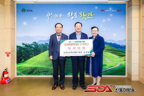 [½Åµ¿¾Æ¹æ¼Û °æ³²ÇÔ¾È=À̽ŵ¿±âÀÚ] Ä¥¿ø ÀξֳëÀκ¹Áö¼¾ÅÍ ±è»óÇÊ ¿øÀåÀº 1ÀÏ ÇԾȱºÃ»À» ¹æ¹®ÇØ Áö¿ªÀÎÀçÀ°¼ºÀ» À§ÇÑ ÀåÇбâ±Ý 1000¸¸ ¿øÀ» ±º ÀåÇÐÀç´Ü¿¡ ±âŹÇß´Ù.