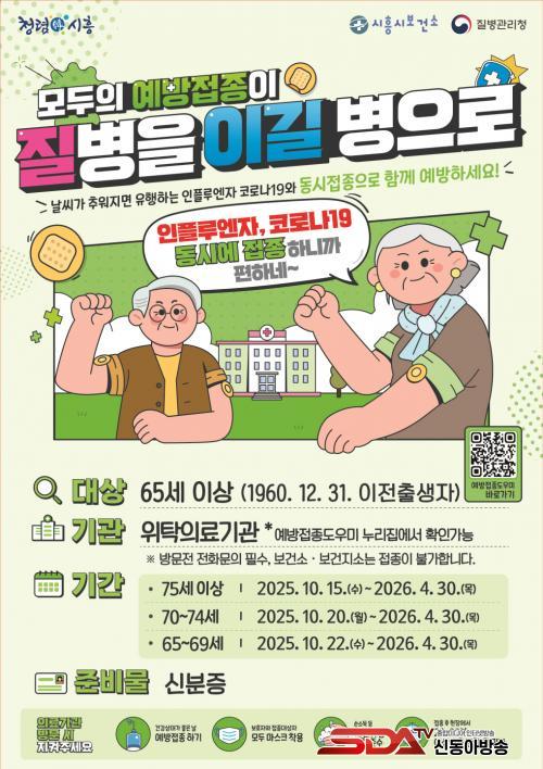 [½Åµ¿¾Æ¹æ¼Û ½ÃÈï½Ã=À̽ŵ¿±âÀÚ] ½ÃÈï½Ã´Â ¿À´Â 10¿ù 15ÀϺÎÅÍ ³»³â 4¿ù 30ÀϱîÁö 65¼¼ ÀÌ»ó(1960³â 12¿ù 31ÀÏ ÀÌÀü Ãâ»ýÀÚ) ¾î¸£½ÅÀ» ´ë»óÀ¸·Î µ¶°¨(ÀÎÇ÷翣ÀÚ)°ú Äڷγª19 ¿¹¹æÁ¢Á¾À» µ¿½Ã¿¡ ÁøÇàÇÑ´Ù.