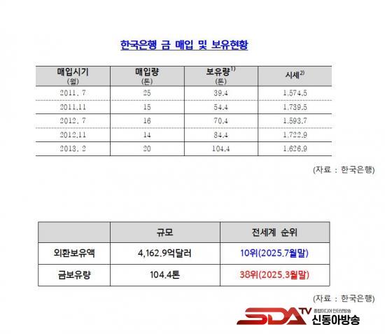 ¹Ý¸é, Çѱ¹ÀºÇàÀÇ ±Ý º¸À¯·®Àº 104.4Åæ(¿Üȯº¸À¯¾×ÀÇ ¾à 1.2%)¿¡ ºÒ°úÇϸç,