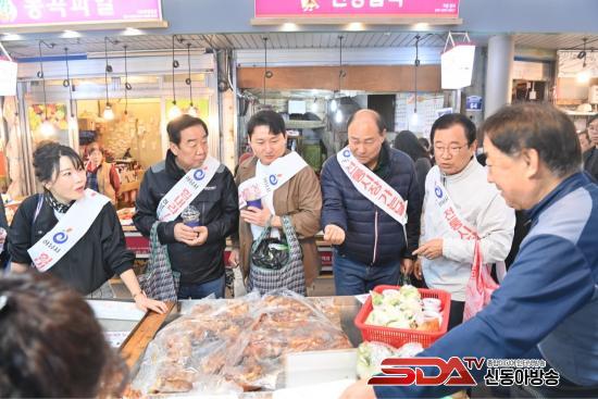 À̳¯ Çà»ç¿¡´Â ÀÌÇöÀç ½ÃÀå°ú ±è½ÂÇö Çϳ²½Ã ±â¾÷ÀÎÇùÀÇȸ ȸÀåÀ» ºñ·ÔÇÑ ÀÓ¿ø 15¿© ¸íÀÌ Âü¿©Çß´Ù. À̵éÀº ¿ÀÈÄ 3½ÃºÎÅÍ ¼®¹Ù´ë »óÁ¡°¡¿Í ½ÅÀ塤´ödz ÀüÅë½ÃÀåÀ» Â÷·Ê·Î ¹æ¹®ÇØ »óÀεéÀ» °Ý·ÁÇϸç ÀüÅë½ÃÀå ÀÌ¿ëÀ» Àå·ÁÇß´Ù.