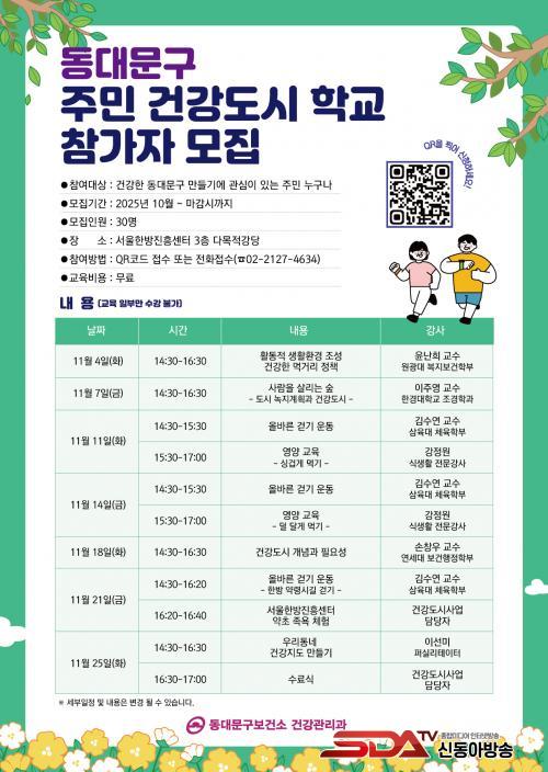 ¡®ÁֹΠ°Ç°µµ½ÃÇб³¡¯´Â ÁֹΠ½º½º·Î °Ç°µµ½ÃÀÇ °³³äÀ» ÀÌÇØÇϰí Áö¿ª»çȸ °Ç° ÁõÁø¿¡ Âü¿©Çϵµ·Ï µ½´Â ÇÁ·Î±×·¥ÀÌ´Ù. ƯÈ÷ 2023³â 12¿ù 22ÀϺÎÅÍ ½ÃÇàµÈ¡¸±¹¹Î°Ç°ÁõÁø¹ý¡¹Á¦6Á¶ÀÇ5(°Ç°µµ½ÃÀÇ Á¶¼º µî)¿¡ µû¶ó Áö¹æÀÚÄ¡´ÜüÀÇ °Ç°µµ½Ã Á¶¼º Àǹ«°¡ ¸í½ÃµÊ¿¡ µû¶ó, µ¿´ë¹®±¸´Â ÁÖ¹ÎÀÌ Áß½ÉÀÌ µÇ´Â °Ç°µµ½Ã ±â¹ÝÀ» °ÈÇϰíÀÚ À̹ø °úÁ¤À» ±âȹÇß´Ù.