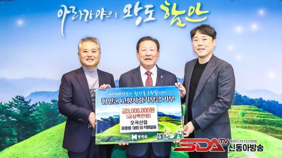 [½Åµ¿¾Æ¹æ¼Û °æ³²ÇÔ¾È=À̽ŵ¿±âÀÚ] ÇԾȱºÀº Áö³­ 10ÀÏ ÇԾȱº Ä¥¿øÀ¾¿¡ ÀÖ´Â ¿À°î»ê¾÷ÀÌ °íÇâ»ç¶û±âºÎ±Ý 300¸¸ ¿øÀ» ±âŹÇß´Ù°í ¹àÇû´Ù.
