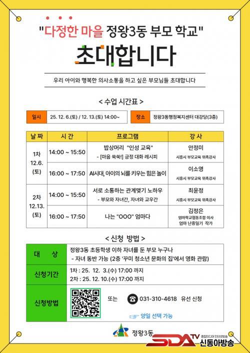 [½Åµ¿¾Æ¹æ¼Û ½ÃÈï½Ã=À̽ŵ¿±âÀÚ] ½ÃÈï½Ã Á¤¿Õ3µ¿ ÇàÁ¤º¹Áö¼¾ÅÍ´Â ¿À´Â 12¿ù 6Àϰú 13ÀÏ ¾çÀϰ£, ÀÚ³à¿ÍÀÇ ¿Ã¹Ù¸¥ ÀÇ»ç¼ÒÅë ¹æ¹ýÀ» ¹è¿ì°í ºÎ¸ð ¿ªÇÒ¿¡ ´ëÇÑ ÀڽۨÀ» ³ôÀÏ ¼ö ÀÖ´Â ¡®´ÙÁ¤ÇÑ ¸¶À» Á¤¿Õ3µ¿ ºÎ¸ðÇб³¡¯¸¦ ¿î¿µÇÑ´Ù.