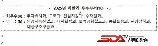 ¿ÃÇØ ÇϹݱâ ÃÖ¿ì¼öºÎ¼­·Î´Â ÅõÀÚÀ¯Ä¡°ú, µµ·Î°ú, °Ç¼³Áö¿ø°ú, ¼öÀÚ¿ø°ú µî 4°³ ºÎ¼­°¡ ¼±Á¤µÆ´Ù. ÀÌµé ºÎ¼­´Â ºÐ¾ßº° ÇÙ½É Çö¾È¿¡¼­ ¶Ñ·ÇÇÑ ¼º°ú¸¦ °ÅµÎ¸ç µµÁ¤ ¹ßÀü¿¡ Å©°Ô ±â¿©Çß´Ù.