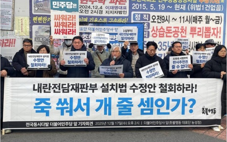 ±¹¹ÎÇлìÀ» ¸í·ÉÇÑ À±¼®¿ÀÇ ³»¶õÀÇ ¹ã ÀÌÈÄ ÀÚ¹ßÀû ÃкÒÀ» µé°í ÀÖ´Â ¡®ÃкÒÇൿ¡¯Àº, 17ÀÏ ¹ÎÁÖ´ç»ç ¾Õ ±âÀÚȸ°ß¿¡¼ ½Ã¹Îµé°ú ÇÔ²² "1½ÉºÎÅÍ ³»¶õÀü´ãÀçÆÇºÎ ¼³Ä¡Ç϶ó" "¹ÎÁÖ´çÀº ³»¶õÀü´ãÀçÆÇºÎ ¼³Ä¡¹ý ¼öÁ¤¾ÈÀ» öȸÇ϶ó" "Á¶Èñ´ë »ç¹ýºÎÀÇ ÆÇ»çÃßõ±Ç ÁÙ ¼ö ¾ø´Ù ¹ÎÁÖ´çÀº ½Î¿ö¶ó" "Á×¾¬¼ °³ÁÙ ¼ÀÀΰ¡ ¹ÎÁÖ´çÀº °¢¼ºÇ϶ó" µîÀÇ ±¸È£¸¦ ¿ÜÃÆÀ¸¸ç,