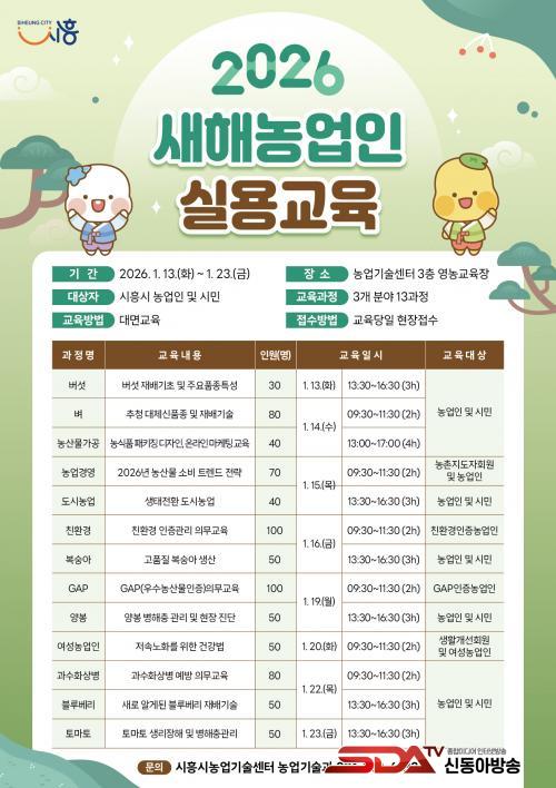 ³ó¾÷ÀÎ 970¿© ¸íÀ» ´ë»óÀ¸·Î ÁøÇàµÇ´Â À̹ø ±³À°Àº ÀÛ¹°º° Àü¹®³ó¾÷±â¼ú ±³À°°ú º´ÇØÃæ ¿¹¹æ ±³À° µî ÃÑ 3°³ ºÐ¾ß 13°³ °úÁ¤À¸·Î ±¸¼ºµÆ´Ù. ƯÈ÷ Ãֽгó¾÷Á¤º¸¿Í ½ÃÈï½Ã ³ó¾÷ µ¿ÇâÀ» ¾È³»ÇÏ´Â °úÁ¤À» ÇÔ²² ¿î¿µÇØ ³ó¾÷Àε鿡°Ô ½ÇÁúÀûÀÎ µµ¿òÀÌ µÇµµ·Ï ÁøÇàµÈ´Ù.