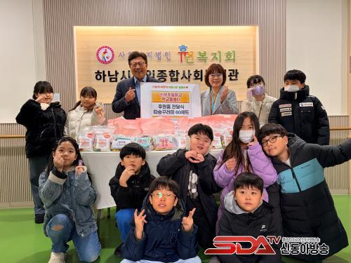 Çϳ²½Ã°¨ÀÏÁ¾ÇÕ»çȸº¹Áö°ü ±è»óȯ °üÀåÀº ¡°³ª´®¿¡ ÇÔ²²ÇØÁֽŠ½Å¿ìÃʵîÇб³ Çб³µ¹º½ÅÍÀÇ µû¶æÇÑ ¸¶À½¿¡ °¨»çµå¸®¸ç, ³ª´®ÇØ ÁֽŠÈÄ¿øÇ°Àº Áö¿ª ³» Áö¿øÀÌ ÇÊ¿äÇÑ ¾î¸£½Å Á᫐ Ãë¾à°èÃþµé¿¡°Ô Àß Àü´ÞÇϰڴÙ.¡± °í¸¶¿î ¸¶À½À» ÀüÇß´Ù.
