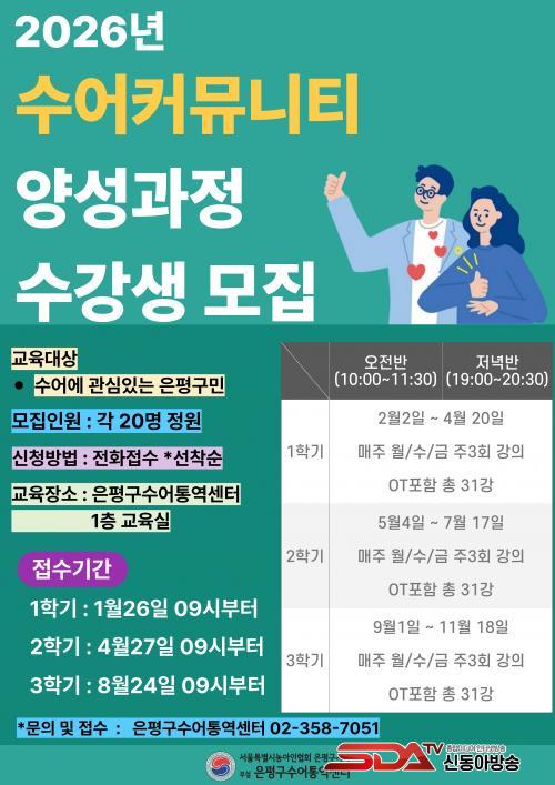 [½Åµ¿¾Æ¹æ¼Û ÀºÆò±¸=À̽ŵ¿±âÀÚ] ¼­¿ï ÀºÆò±¸´Â ¡®2026³â ¼ö¾îÄ¿¹Â´ÏƼ ¾ç¼º°úÁ¤¡¯ 1Çб⠼ö°­»ýÀ» 26ÀÏ ¿ÀÀü 9½ÃºÎÅÍ ¼±Âø¼øÀ¸·Î 20¸íÀ» ¸ðÁýÇÑ´Ù°í ¹àÇû´Ù.