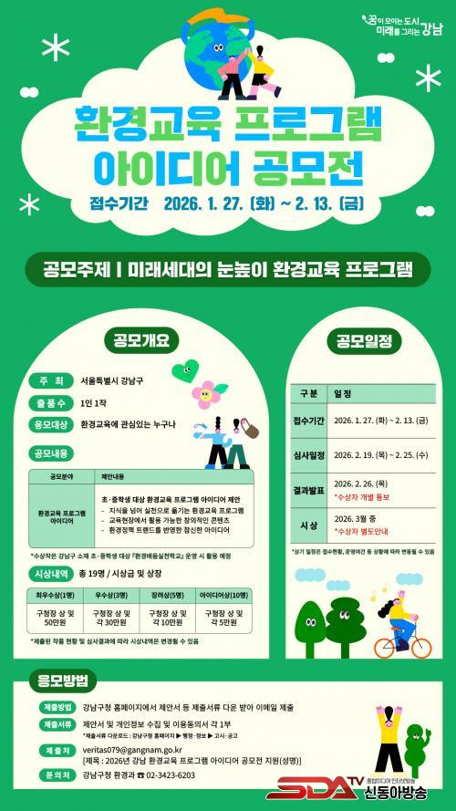 [½Åµ¿¾Æ¹æ¼Û °­³²±¸=À̽ŵ¿±âÀÚ] ²ÞÀÌ ¸ðÀÌ´Â µµ½Ã, ¹Ì·¡¸¦ ±×¸®´Â °­³²±¸°¡ Çб³ ÇöÀå¿¡¼­ ¹Ù·Î Ȱ¿ëÇÒ ¼ö Àִ ȯ°æ±³À° ÄÜÅÙÃ÷¸¦ ¹ß±¼Çϱâ À§ÇØ ¡®2026³â °­³² ȯ°æ±³À° ÇÁ·Î±×·¥ °ø¸ðÀü¡¯À» 1¿ù 27ÀϺÎÅÍ 2¿ù 13ÀϱîÁö ÁøÇàÇÑ´Ù.