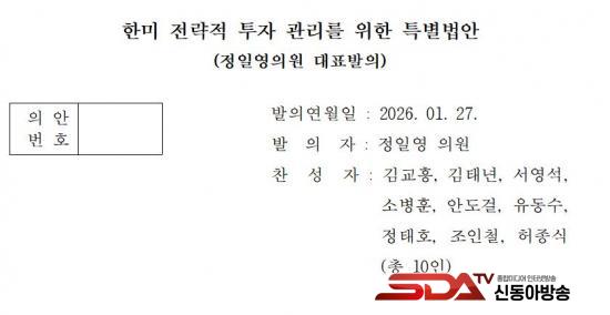 [½Åµ¿¾Æ¹æ¼Û ÀÎõ=À±¹Î½Ä±âÀÚ]27ÀÏ(È­), Á¤ÀÏ¿µ ±¹È¸ÀÇ¿ø(´õºÒ¾î¹ÎÁִ硤ÀÎõ¿¬¼öÀ»)Àº ÇÑ¹Ì °£ ´ë±Ô¸ð Àü·«Àû ÅõÀÚ¸¦ ü°èÀûÀ¸·Î °ü¸®¡¤°¨µ¶Çϱâ À§ÇÑ ¡¸ÇÑ¹Ì Àü·«Àû ÅõÀÚ °ü¸®¸¦ À§ÇÑ Æ¯º°¹ý¾È¡¹À» ´ëÇ¥ ¹ßÀÇÇß´Ù.