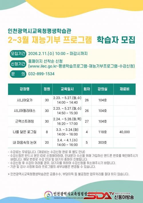 [½Åµ¿¾Æ¹æ¼Û ÀÎõ=À±¹Î½Ä±âÀÚ]ÀÎõ±¤¿ª½Ã±³À°Ã»Æò»ýÇнÀ°ü(°üÀå ÀÌÀç±æ)Àº ¿À´Â 23ÀϺÎÅÍ ¡®Àç´É±âºÎ ÇÁ·Î±×·¥¡¯À» ¿î¿µÇÑ´Ù.