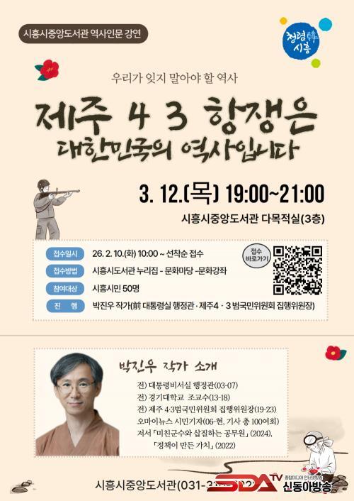 [½Åµ¿¾Æ¹æ¼Û ½ÃÈï½Ã=À̽ŵ¿±âÀÚ] ½ÃÈï½ÃÁß¾Óµµ¼­°üÀº ¿À´Â 3¿ù 12ÀÏ ¿ÀÈÄ 7½Ã, ½Ã¹ÎÀ» ´ë»óÀ¸·Î ¿ª»ç Àι® °­¿¬ ¡®Á¦ÁÖ 4¤ý3Ç×ÀïÀº ´ëÇѹα¹ÀÇ ¿ª»çÀÔ´Ï´Ù¡¯¸¦ ¿î¿µÇÑ´Ù.