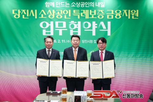 ´çÁø½Ã(½ÃÀå ¿À¼ºÈ¯)´Â 11ÀÏ ´çÁø½Ãû Á¢°ß½Ç¿¡¼ ¿À¼ºÈ¯ ´çÁø½ÃÀå°ú ¿ÀÁÖÇö NH³óÇùÀºÇà Ãæ³²º»ºÎÀå, Á¶¼ÒÇà Ãæ³²½Å¿ëº¸ÁõÀç´Ü ÀÌ»çÀåÀÌ Âü¼®ÇÑ °¡¿îµ¥ ¼Ò»ó°øÀΠƯ·Êº¸Áõ ±ÝÀ¶Áö¿ø ¾÷¹«Çù¾àÀ» ü°áÇϰí, Áö¿ª ¼Ò»ó°øÀÎÀ» À§ÇÑ ±ÝÀ¶Áö¿ø ±Ô¸ð¸¦ Ãß°¡·Î È®ÃæÇß´Ù°í ¹àÇû´Ù.