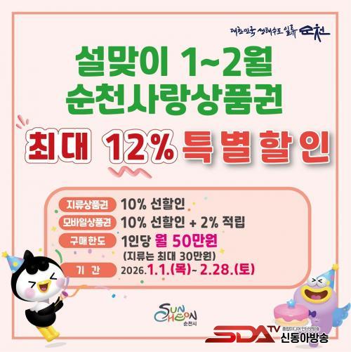 ½Ã¿¡ µû¸£¸é 2026³â 1¿ùºÎÅÍ ÁøÇà ÁßÀÎ ¼øÃµ»ç¶û»óǰ±Ç ÇÒÀÎÇà»ç¿¡ µû¶ó Áö·ùÇüÀº 10% ¼±ÇÒÀÎ, ¸ð¹ÙÀÏÇüÀº 10% ¼±ÇÒÀο¡ »ç¿ë±Ý¾×ÀÇ 2%¸¦ ÈÄij½Ã¹éÀ¸·Î Á¦°øÇØ ÃÑ 12% ÇýÅÃÀ» ¹ÞÀ» ¼ö ÀÖ´Ù.