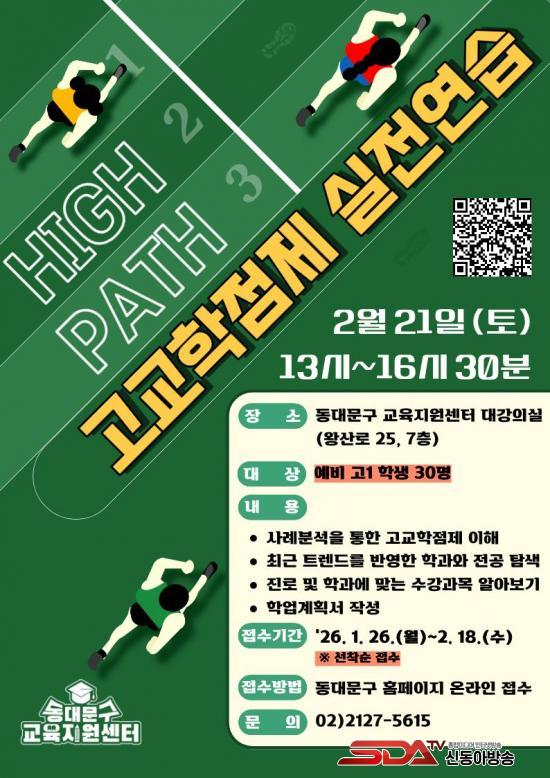 [½Åµ¿¾Æ¹æ¼Û µ¿´ë¹®±¸=À̽ŵ¿±âÀÚ] ¼­¿ï µ¿´ë¹®±¸´Â ¿¹ºñ °í1À» ´ë»óÀ¸·Î ÇÑ Àüȯ±â ±³À° ½ÉÈ­ ÇÁ·Î±×·¥ ¡ºHIGH PATH: °í±³ÇÐÁ¡Á¦ ½ÇÀü¿¬½À¡»À» 2¿ù 21ÀÏ ¿ÀÈÄ 1½ÃºÎÅÍ 4½Ã 30ºÐ±îÁö µ¿´ë¹®±¸ ±³À°Áö¿ø¼¾ÅÍ ´ë°­Àǽǿ¡¼­ ¿¹ºñ °í1 Çлý 30¸íÀ» ´ë»óÀ¸·Î ¿î¿µÇÑ´Ù.