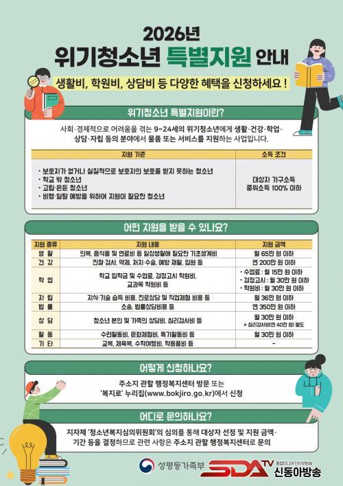 [½Åµ¿¾Æ¹æ¼Û ½ÃÈï½Ã=À̽ŵ¿±âÀÚ] ½ÃÈï½Ã´Â ¿À´Â 3¿ù 31ÀϱîÁö ¡®2026³â À§±âû¼Ò³â Ưº°Áö¿ø¡¯ ´ë»óÀÚ¸¦ ÁýÁßÀûÀ¸·Î ¸ðÁýÇÑ´Ù.