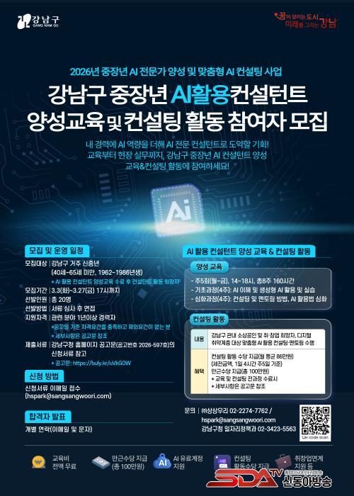 [½Åµ¿¾Æ¹æ¼Û °­³²±¸=À̽ŵ¿±âÀÚ] ²ÞÀÌ ¸ðÀÌ´Â µµ½Ã, ¹Ì·¡¸¦ ±×¸®´Â °­³²±¸°¡ ÁßÀå³â ÅðÁ÷ÀÚÀÇ °æ·Â°ú »ý¼ºÇü ÀΰøÁö´É(AI) ¿ª·®À» °áÇÕÇØ Áö¿ª °æÁ¦ ÇöÀå¿¡ °ð¹Ù·Î ÅõÀÔÇÏ´Â ¡®2026³â ÁßÀå³â AI Àü¹®°¡ ¾ç¼º ¹× ¸ÂÃãÇü AI ÄÁ¼³ÆÃ »ç¾÷¡¯À» ÃßÁøÇϸç, ±× Âü¿©ÀÚ¸¦ 3¿ù 27ÀϱîÁö ¸ðÁýÇÑ´Ù.