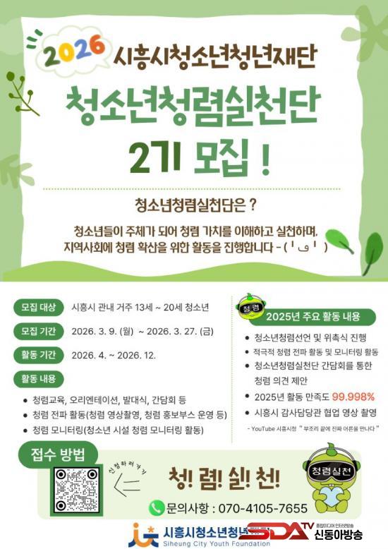 ¸ðÁý ´ë»óÀº °ü³» 13¼¼ºÎÅÍ 20¼¼±îÁöÀÇ Ã»¼Ò³âÀ̸ç, ¸ðÁý ±â°£Àº 3¿ù 9ÀϺÎÅÍ 27ÀϱîÁö´Ù. Âü¿©¸¦ Èñ¸ÁÇϴ û¼Ò³âÀº (Àç)½ÃÈï½Ãû¼Ò³âû³âÀç´Ü ´©¸®Áý ¶Ç´Â ´©¸®¼ÒÅë¸ÁÀ» È®ÀÎÇϰųª È«º¸ Æ÷½ºÅÍ¿¡ ±âÀçµÈ Á¤º¸¹«´Ì(Å¥¾ËÄÚµå)¸¦ ÅëÇØ ½ÅûÇÒ ¼ö ÀÖ´Ù. °ü·Ã ¹®ÀÇ´Â ½ÃÈï½Ãû¼Ò³âû³âÀç´Ü(070-4105-7655)À¸·Î ÇÏ¸é µÈ´Ù.