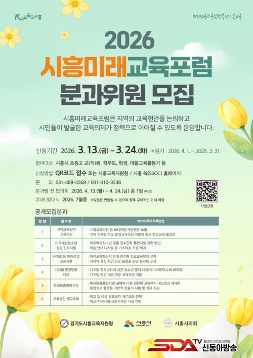 [½Åµ¿¾Æ¹æ¼Û ½ÃÈï½Ã=À̽ŵ¿±âÀÚ] ½ÃÈï½Ã¿Í °æ±âµµ½ÃÈï±³À°Áö¿øÃ», ½ÃÈï½ÃÀÇȸ´Â Áö¿ª ±³À°°øµ¿Ã¼ °£ ¼ÒÅë°ú Çù·ÂÀ» ÅëÇØ ±³À° ÀÇÁ¦¸¦ ¹ß±¼Çϰí Á¤Ã¥À¸·Î ¿¬°èÇϱâ À§ÇØ ¿î¿µÇÏ´Â ¡®2026 ½ÃÈï¹Ì·¡±³À°Æ÷·³¡¯ÀÇ ºÐ°úÀ§¿øÀ» 3¿ù 24ÀϱîÁö °ø°³ ¸ðÁýÇÑ´Ù.