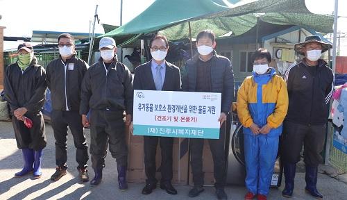 [½Åµ¿¾Æ¹æ¼Û´º½º=Á¤ÁöÀ± ±âÀÚ] ÁøÁֽú¹ÁöÀç´Ü(ÀÌ»çÀå À̼º°©)Àº Áö³­ 26ÀÏ ÁøÁֽà ÁýÇö¸é À¯±âµ¿¹° º¸È£¼Ò¸¦ ¹æ¹®ÇØ 200¸¸¿ø »ó´çÀÇ ¹°Ç°À» Áö¿øÇß½À´Ï´Ù. À̹ø Áö¿ø ¹°Ç°Àº ³óÇù ÁøÁÖ½ÃÁöºÎ(ÁöºÎÀå Á¤´ëÀÎ)ÀÇ ¼º±Ý Áö¿øÀ¸·Î ¸¶·ÃµÇ¾úÀ¸¸ç, À¯±âµ¿¹°ÀÇ À̺Ò, ´ã¿ä,¡¦