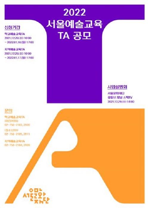 [½Åµ¿¾Æ¹æ¼Û´º½º=Á¤ÁöÀ± ±âÀÚ] ¼­¿ï¹®È­Àç´Ü(´ëÇ¥ÀÌ»ç ÀÌâ±â)Àº ¼­¿ï½Ã³» Çб³¿Í Áö¿ª °ÅÁ¡ Ű¿ò¼¾ÅÍ µî¿¡¼­ ¿¹¼ú ¼ö¾÷À» ÁøÇàÇÒ ±³À°¿¹¼ú°¡(Teaching Artist, TA)¿Í ±³À°´Üü¸¦ ¼±¹ßÇÏ´Â 2022³â ¼­¿ï¿¹¼ú±³À°»ç¾÷ °ø¸ð¸¦ 27ÀÏ(¿ù)ºÎÅÍ ³»³â 2¿ù 16ÀÏ(¼ö)±îÁö ÁøÇàÇÑ´Ù¡¦