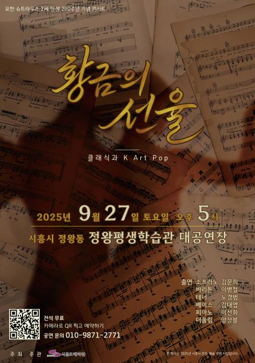 [½Åµ¿¾Æ¹æ¼Û ½ÃÈï½Ã=À̽ŵ¿±âÀÚ] ½ÃÈï¿ÀÆä¶ó´ÜÀº ¿À´Â 9¿ù 27ÀÏ ¿ÀÈÄ 5½Ã ½ÃÈï Á¤¿ÕÆò»ýÇнÀ°ü ´ë°ø¿¬Àå¿¡¼­ ¡®È²±ÝÀÇ ¼±À² : Ŭ·¡½Ä°ú K-Art PopÀÇ ¸¸³²¡¯ Äܼ­Æ®¸¦ °³ÃÖÇÑ´Ù. À̹ø °ø¿¬Àº ¡®¿ÐÃ÷ÀÇ ¿Õ¡¯À¸·Î ºÒ¸®´Â ¿äÇÑ ½´Æ®¶ó¿ì½º 2¼¼ ź»ý 200ÁÖ³âÀ» ±â³äÇØ ¸¶·Ã¡¦