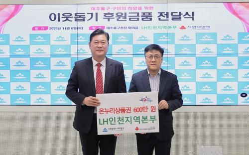 ¹ÌÃßȦ±¸, Çѱ¹ÅäÁöÁÖÅðø»ç(LH) ÀÎõÁö¿ªº»ºÎ·ÎºÎÅÍ ¾Æµ¿º¹Áö½Ã¼³ Áö¿øÀ» À§ÇÑ ¿Â´©¸®»óǰ±Ç 600¸¸ ¿ø Àü´Þ¹Þ¾Æ