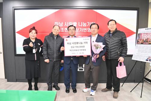 [½Åµ¿¾Æ¹æ¼Û Çϳ²½Ã=À̽ŵ¿±âÀÚ] Çϳ²½Ã´Â 24ÀÏ °ü³» ¹éÁ¶Çö´ëB»ó°¡¹ø¿µÈ¸¿¡¼­ ¡®Çϳ² »ç¶ûäñ³ª´®¡¯¼º±ÝÀ¸·Î 70¸¸¿øÀ» ±âŹ¹Þ¾Ò´Ù°í ¹àÇû´Ù. À̳¯ ±âŹ½Ä¿¡´Â ÀÌÇöÀç Çϳ²½ÃÀåÀ» ºñ·ÔÇÏ¿© À̼º±Ù ȸÀå, À̰­¿ë °¨»ç, À̹®¼· Ãѹ«°¡ Âü¼®Çß´Ù. ¹éÁ¶Çö´ëB»ó°¡¡¦