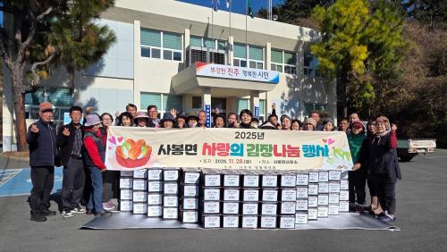 [½Åµ¿¾Æ¹æ¼Û °æ³²ÁøÁÖ=³²±Ã¿µ±â±âÀÚ] »çºÀ¸é»ç¹«¼Ò´Â Áö³­ 11¿ù 28ÀÏ ¸é»ç¹«¼Ò ÁÖÂ÷Àå¿¡¼­ »ç¶ûÀÇ ±èÀå ³ª´® Çà»ç¸¦ ÁøÇàÇØ Áö¿ª ³» ¾î·Á¿î ÀÌ¿ôµé¿¡°Ô µû¶æÇÑ ¸¶À½À» Àü´ÞÇß´Ù°í ¹àÇû´Ù. À̹ø Çà»ç¿¡´Â °ü³» ÀÚ¿øºÀ»çÀÚ 50¿© ¸íÀÌ Âü¿©ÇØ ÃÑ 240Æ÷±âÀÇ ±èÀåÀ» ´ã°¡¡¦