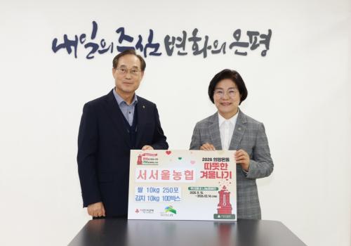 [½Åµ¿¾Æ¹æ¼Û ÀºÆò±¸=À̽ŵ¿±âÀÚ] ¼­¿ï ÀºÆò±¸´Â Áö³­ 1ÀÏ ¼­¼­¿ï³óÇù°ú ¡®2026 Èñ¸Á¿Âµ¹ µû¶æÇÑ °Ü¿ï³ª±â »ç¶ûÀÇ ÀÌ¿ôµ½±â ¼ºÇ° Àü´Þ½Ä¡¯À» °¡Á³´Ù°í ¹àÇû´Ù. ¼­¼­¿ï³óÇùÀº Áö¿ª»çȸ ³ª´® Ȱµ¿ÀÇ ÀÏȯÀ¸·Î ½Ò 10kg¾¿ ÃÑ 250Æ÷, ±èÄ¡ 10Kg¾¿ ÃÑ 100¹Ú½º¸¦ Àü´ÞÇßÀ¸¸ç ¡¦