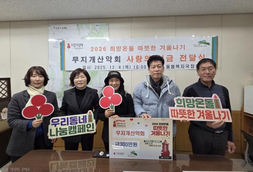 ÀºÆò±¸, ¹«Áö°³ »ê¾Çȸ¼­ ¡®»ç¶ûÀÇ ÀÌ¿ôµ½±â ¼º±Ý¡¯ Àü´Þ¹Þ¾Æ