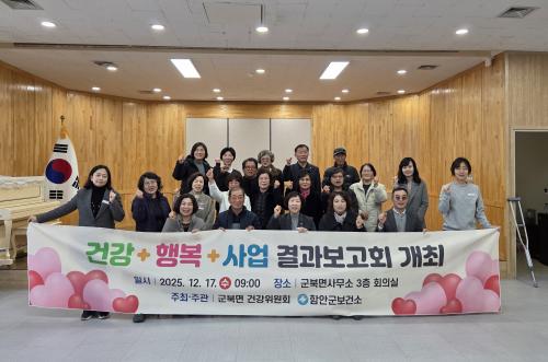[½Åµ¿¾Æ¹æ¼Û °æ³²ÇÔ¾È=À̽ŵ¿±âÀÚ] ÇԾȱº º¸°Ç¼Ò´Â Áö³­ 17ÀÏ ±ººÏ¸é»ç¹«¼Ò 3Ãþ ȸÀǽǿ¡¼­ ¡®2025³â °Ç°­ Ç÷¯½º Çູ Ç÷¯½º »ç¾÷ °á°úº¸°íȸ¡¯¸¦ °³ÃÖÇß´Ù°í ¹àÇû´Ù. À̳¯ °á°úº¸°íȸ¿¡´Â 23¸íÀÇ ±ººÏ¸é °Ç°­À§¿øÈ¸ À§¿øÀ» ºñ·ÔÇÑ ±ººÏ¸é¹Î 200¿© ¸íÀÌ Âü¼®Çß´Ù¡¦