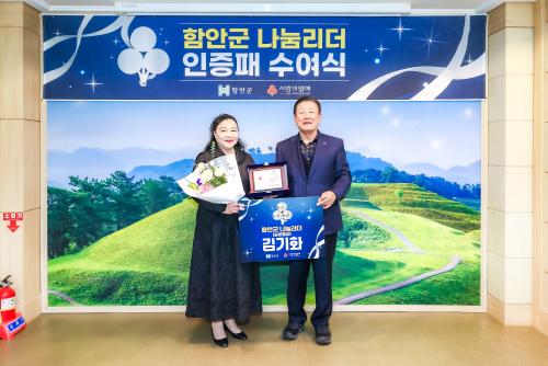 [½Åµ¿¾Æ¹æ¼Û °æ³²ÇÔ¾È=À̽ŵ¿±âÀÚ] ÇԾȱºÀº Áö³­ 26ÀÏ ÀξֳëÀκ¹Áö¼¾ÅÍ ±è±âÈ­ ¼¾ÅÍÀåÀÌ °æ»ó³²µµ»çȸº¹Áö°øµ¿¸ð±Ýȸ°¡ ÀÎÁõÇÏ´Â ¡®³ª´®¸®´õ ½Ç¹öµî±Þ¡¯À¸·Î »óÇâ Á¶Á¤µÅ ÇԾȱº ÃÖÃÊ ³ª´®¸®´õ ½Ç¹ö ȸ¿øÀÌ µÆ´Ù°í ¹àÇû´Ù. ¡®³ª´®¸®´õ¡¯´Â ÀÏÁ¤ ±Ý¾× ÀÌ»óÀÇ °³ÀÎ ¡¦