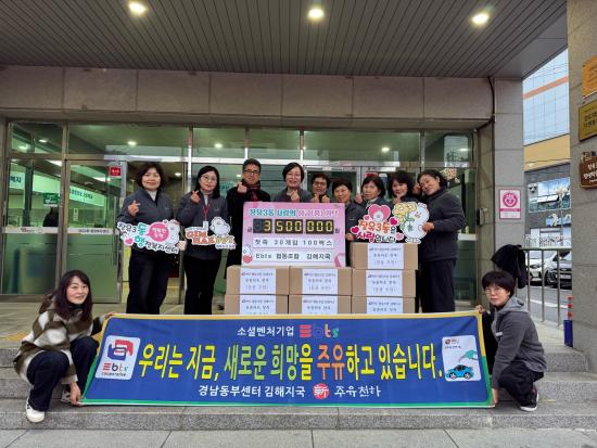 [½Åµ¿¾Æ¹æ¼Û °æ³²±èÇØ=³²±Ã¿µ±â±âÀÚ] ¼Ò¼Èº¥Ã³±â¾÷ EBTSÇùµ¿Á¶ÇÕ ±èÇØÁö±¹¿¡¼­ Áö³­ 24ÀÏ, ÀåÀ¯3µ¿ ³» ¾î·Á¿î ÀÌ¿ô¿¡°Ô Àü´ÞÇØ ´Þ¶ó¸ç ½Ä·áǰ(°Ç°­ÂþÁ× 350¸¸¿ø »ó´ç)À» ±âŹÇÏ¿´´Ù. EBTSÇùµ¿Á¶ÇÕÀº ³ëÀÎ‧Ãë¾à°èÃþ ÀÏÀÚ¸® âÃâ°ú ¹è´ÞÁÖÀ¯, ³ëÀοä¾çÀü¿ø¸¶À»¡¦