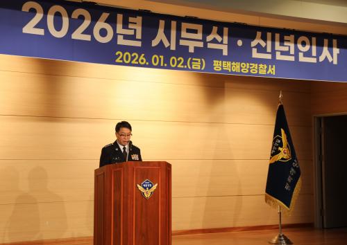 [½Åµ¿¾Æ¹æ¼Û=ÀÌÀçö±âÀÚ] ÆòÅÃÇØ¾ç°æÂû¼­´Â 1¿ù 2ÀÏ ¿ÀÀü, º»¼­ ´ë°­´ç°ú ¼®¹®¹æÁ¶Á¦ ÀÏ¿ø¿¡¼­¡¸2026³â ½Ã¹«½Ä ¹× ¿¬¾È¾ÈÀü°ü¸® ÇöÀå°áÀÇ¡¹¸¦ °³ÃÖÇÏ°í »õÇØ °ø½Ä ¾÷¹«¸¦ ½ÃÀÛÇß´Ù. À̳¯ ½Ã¹«½ÄÀº ¿ÀÀü 9½Ã 30ºÐºÎÅÍ 10½Ã±îÁö º»¼­ 5Ãþ ´ë°­´ç¿¡¼­ ÆòÅÃÇØ°æ¼­Á÷¿ø 70¡¦