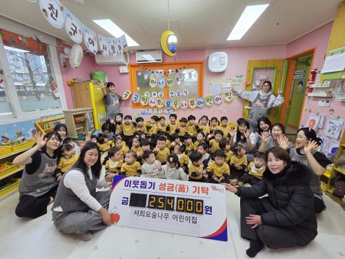 [½Åµ¿¾Æ¹æ¼Û °æ³²±èÇØ=³²±Ã¿µ±â±âÀÚ] ±èÇØ½Ã ÀåÀ¯1µ¿ ÇàÁ¤º¹Áö¼¾ÅÍ´Â 6ÀÏ, °ü³» ¼­Èñ¿ä¼ú³ª¹«¾î¸°ÀÌÁý¿¡¼­ ¾Æ³ª¹Ù´Ù ÀåÅÍ ¼öÀÍ±Ý 254,000¿øÀ» ÀÌ¿ôµ½±â ¼º±ÝÀ¸·Î ±âŹÇß´Ù°í ¹àÇû´Ù. À̹ø ¼º±ÝÀº ¼­Èñ¿ä¼ú³ª¹«¾î¸°ÀÌÁý ¿ø¾Æ¿Í Çкθð, ±³Á÷¿øµéÀÌ ÇÔ²² Âü¿©ÇÑ ¡®¾Æ¡¦