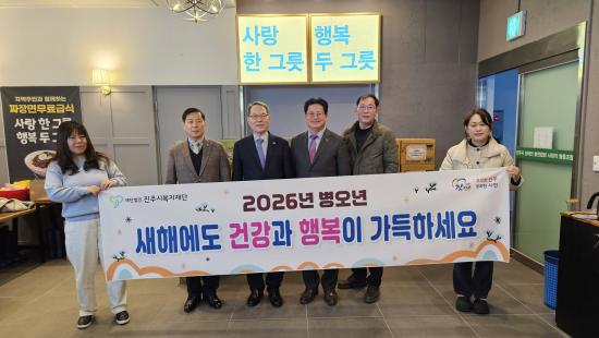 [½Åµ¿¾Æ¹æ¼Û °æ³²ÁøÁÖ=³²±Ã¿µ±â±âÀÚ] ÁøÁֽú¹ÁöÀç´ÜÀº 5ÀÏ ÁøÁÖÁ¾ÇÕ°æ±âÀå¿¡¼­ 2026³â ¼³ ¸íÀýÀ» ¸Â¾Æ Áö¿ª»çȸ ¾î·Á¿î ÀÌ¿ôÀ» À§ÇÑ À§¹®Ç°À» Àü´ÞÇß´Ù. À̹ø À§¹®Ç°Àº ½Ã¹ÎµéÀÇ ÀÚ¹ßÀûÀÎ ±âºÎ±ÝÀ¸·Î ¸¶·ÃµÈ °ÍÀ¸·Î, °ü³» Àå¾ÖÀδÜü 12°³¼Ò¿Í º¸ÈÆ´Üü 9°³¼Ò µî ÃÑ¡¦