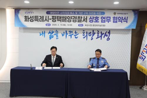 [½Åµ¿¾Æ¹æ¼Û=ÀÌÀçö±âÀÚ] È­¼ºÆ¯·Ê½Ã¿Í ÆòÅÃÇØ¾ç°æÂû¼­(¼­Àå ¿ìä¸í)°¡ 10ÀÏ ¿ÀÈÄ 2½Ã È­¼ºÆ¯·Ê½Ãû Áß¾ÓȸÀǽǿ¡¼­ ÇØ¾ç¾ÈÀü »ç°¢Áö´ë ÇØ¼Ò¿Í ÃÎÃÎÇÑ ¾ÈÀü ±â¹Ý ±¸ÃàÀ» À§ÇÑ ¾÷¹«Çù¾à(MOU)À» ü°áÇß´Ù. À̹ø Çù¾à½ÄÀº È­¼º½ÃÀÇ Æ¯·Ê½Ã ½Â°Ý¿¡ µû¸¥ ÇØ¾ç Ä¡¾È ¼ö¿ä º¯¡¦