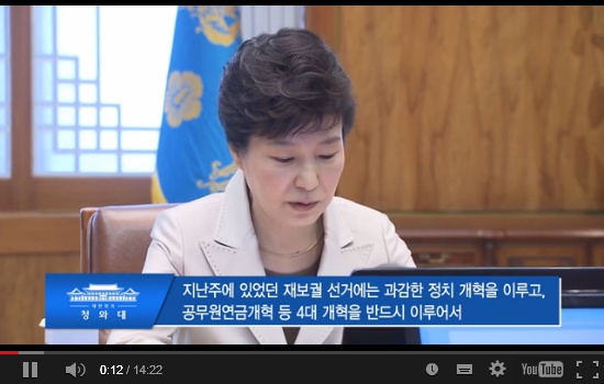 ȸÀǸ¦ ½ÃÀÛÇÏ¸é¼ ¹Ú ´ëÅë·ÉÀº Áö³ À纸±È ¼±°Å´Â °ú°¨ÇÑ Á¤Ä¡ °³ÇõÀ» ÀÌ·ç°í, °ø¹«¿ø¿¬±Ý°³Çõ µî 4´ë °³ÇõÀ» ¹Ýµå½Ã ÀÌ·ç¾î¼ ³ª¶ó¸¦ ¹Ù·Î ¼¼¿ì¶ó´Â ±¹¹ÎÀÇ ¶æÀÌ ´ã°ÜÁ® ÀÖ´Ù°í ¾ð±ÞÇߴµ¥¿ä.