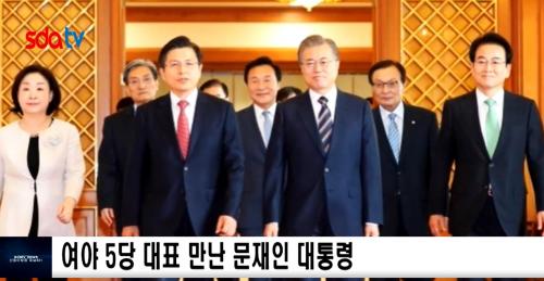 [½Åµ¿¾Æ¹æ¼Û´º½º=À̼öÁ¤ ±âÀÚ] 5³â ÀÓ±â Áß Àü¹Ý±â¸¦ ¸¶Ä£ ¹®ÀçÀÎ ´ëÅë·ÉÀÌ 10ÀÏ ¿ÀÈÄ 6½Ã ¿©¾ß 5´ç ´ëÇ¥µéÀ» û¿Í´ë ¡®¾È¹æ¡¯ÀÎ °üÀú·Î ÃÊÃ»ÇØ ¸¸ÂùÀ» ½ÃÀÛÇß½À´Ï´Ù.