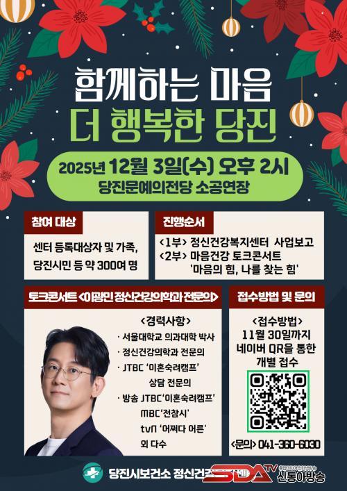 [½Åµ¿¾Æ¹æ¼Û=ÀÌÀçö±âÀÚ] ´çÁø½Ãº¸°Ç¼Ò(¼ÒÀå ¹ÚÁ¾±Ô)´Â ¿À´Â 12¿ù 3ÀÏ ¿ÀÈÄ 2½Ã ´çÁø¹®¿¹ÀÇÀü´ç ¼Ò°ø¿¬Àå¿¡¼­ 2025³â Á¤½Å°Ç°­º¹Áö¼¾ÅÍ »ç¾÷ º¸°íȸ ¹× ¸¶À½°Ç°­ ÅäÅ©Äܼ­Æ®¸¦ °³ÃÖÇÑ´Ù°í 20ÀÏ ¹àÇû´Ù.